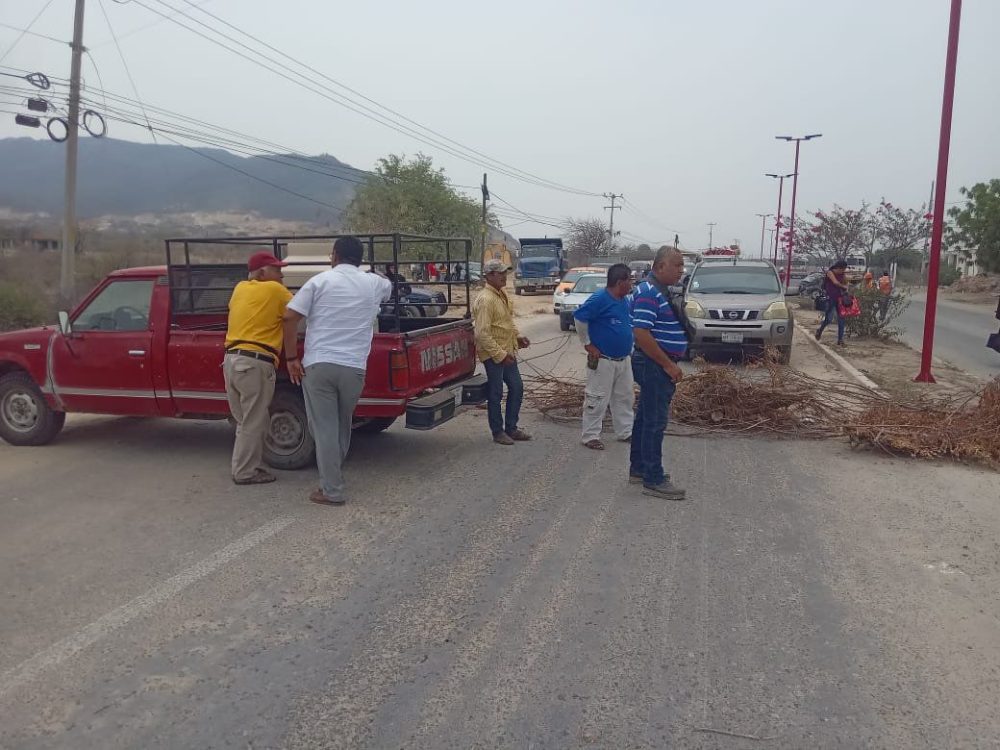 Para exigir la conclusión de algunas obras para el abastecimiento de agua potable, un grupo de vecinos de la colonia Santa Cruz, perteneciente al municipio de Asunción Ixtaltepec, bloquean el paso hacia Ciudad Ixtepec, en la región del Istmo de Tehuantepec.