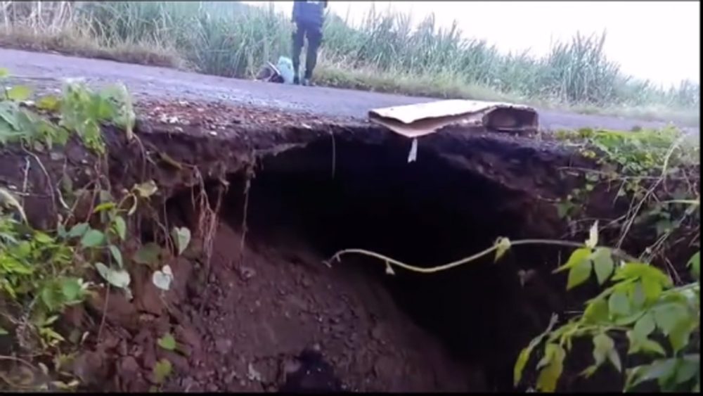 La dependencia indica que derivado de las intensas lluvias registradas en la zona, se originó un socavón que pone en riesgo el tránsito por esta vía de comunicación.
