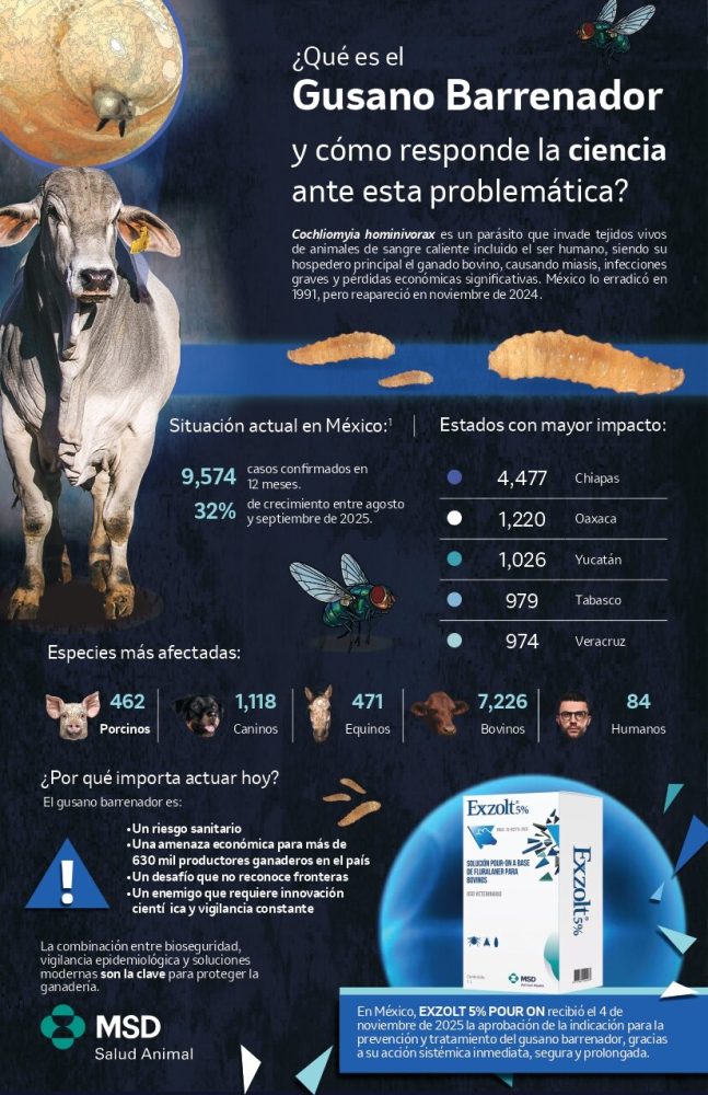 Cabe destacar que MSD Salud notificó 84 casos humanos con corte al 25 de noviembre; sin embargo, el Boletín Epidemiológico de la Semana Epidemiológica 47 de la Secretaría de Salud (del 16 al 22 de noviembre) confirmó 92 casos de miasis humana.
