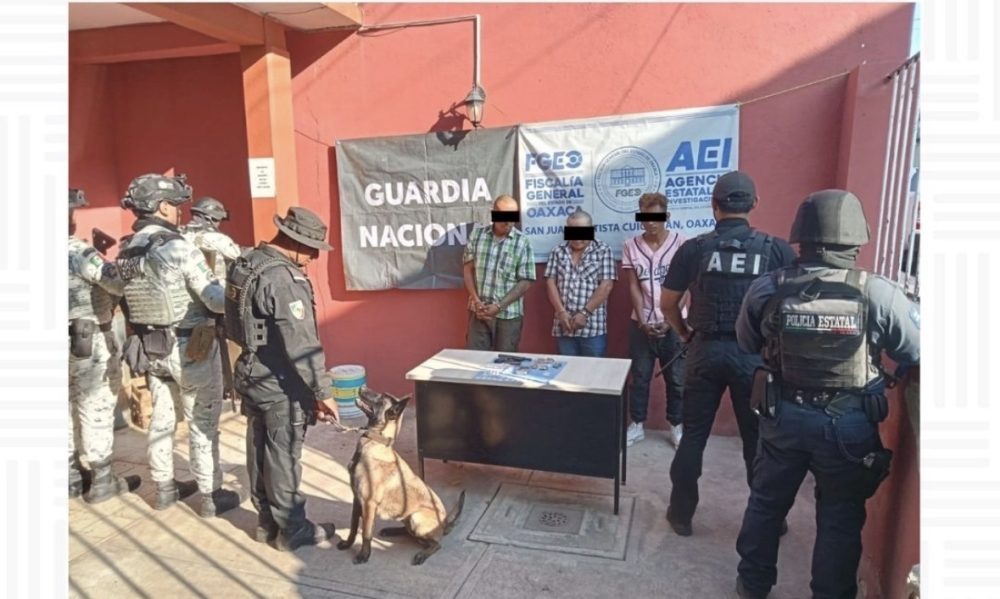 Oaxaca de Juárez a 26 de abril de 2026..- Como resultado de labores de investigación y en cumplimiento de dos órdenes de cateo ejecutadas en distintos inmuebles ubicados en el municipio de San Juan Bautista Cuicatlán, la Fiscalía General del Estado de Oaxaca (FGEO) logró la detención de tres personas del sexo masculino, así como el aseguramiento de diversas dosis de droga, un arma de fuego y otros indicios relacionados con la probable comisión de delitos.