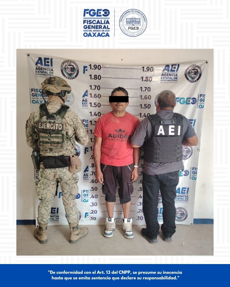 Una vez ubicado, elementos de la Agencia Estatal de Investigaciones AEI en coordinación con la Secretaría de la Defensa Nacional (DEFENSA) efectuaron la detención de V.L.S., para posteriormente, trasladarlo a las instalaciones ministeriales de la Vicefiscalía Regional del Istmo, donde fue puesto a disposición de la autoridad ministerial competente, quien determinará su situación jurídica conforme a Derecho.
