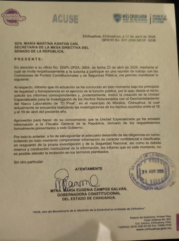 Nota de origen: https://www.proceso.com.mx/nacional/2026/4/28/maru-campos-no-acudira-al-senado-para-aclarar-caso-de-agentes-de-la-cia-en-chihuahua-373017.html