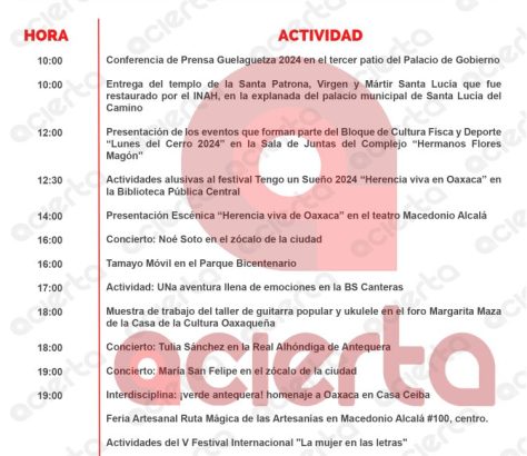 Agenda de Actividades para el 05