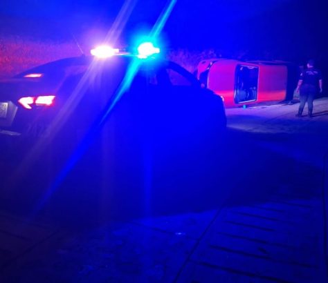 Abandonan camioneta volcada en San Gabriel